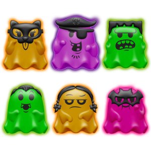 Sada obsahuje více než 30 druhů antistresových hraček s motivem Halloween