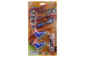 Sada prstových skateboardů a bruslí.
