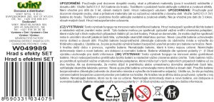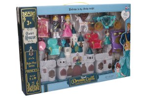 Hrad set. Výška hradu 23cm. Velikost rozloženého hradu 35cm. Obsahuje hrad, 3 postavičky, nábytek, kočár s koněm. Hrad je rozkládací. 3xAG13 baterie součástí. Hodiny fungují jako tlačítko pro spuštění efektů.
