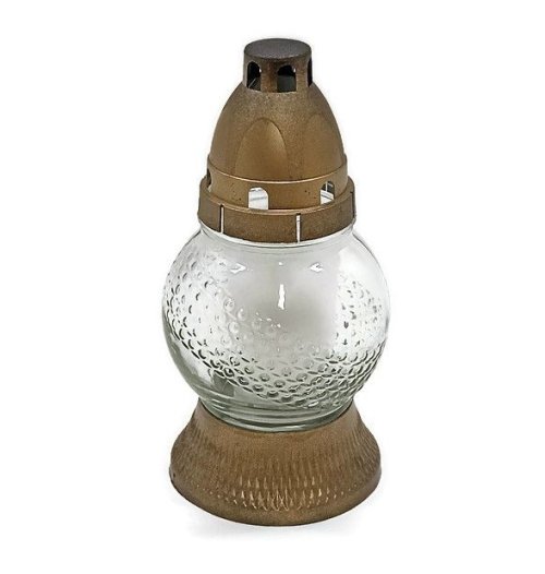 Skleněná hřbitovní svíčka s vyměnitelnou parafínovou náplní 30g, s plastovým spodkem, zajišťujícím dobrou stabilitu skla a plastovým vrškem, který chrání plamen před zhasnutím vlivem větru a deště. Rozměry 7.5 x 7.5 a výška 18 cm, možnost použít náhradní vklad 50g. Doba hoření do 8 hodin. Vyrobeno v EU. EAN 5901685203296