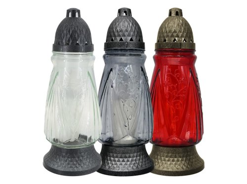 Tento produkt v mixu barev je určen pro ozdobení hrobů a pomníků. Hoří až 30 hodin. Jeho rozměry jsou 29 cm.