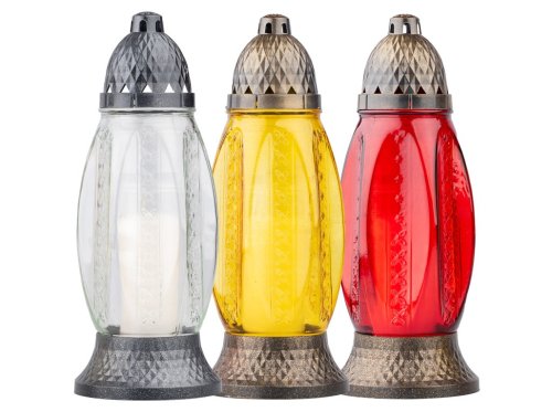 Ideální pro dekoraci hrobů a pomníků. Tento produkt nabízí až 32 hodin hoření a je zdobený v kombinaci barev. Jeho rozměry jsou 29 cm.