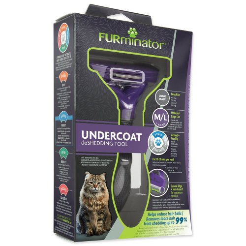 Hrablo FURminator® na vyčesávání podsady u koček středně velkých a velkých plemen s dlouhou srstí.