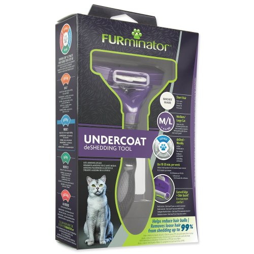 Hrablo FURminator® na vyčesávání podsady u koček středně velkých a velkých plemen s krátkou srstí.