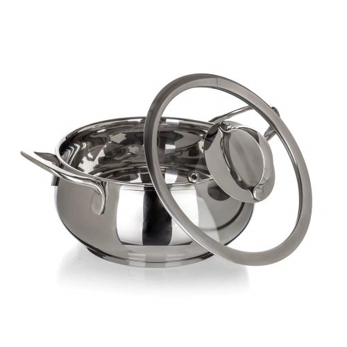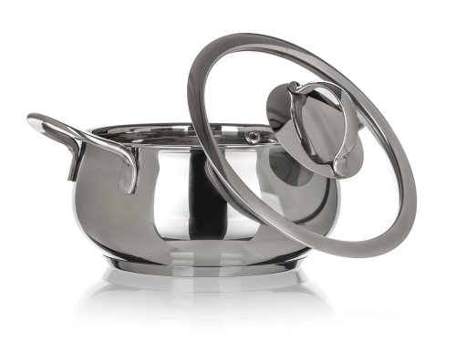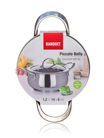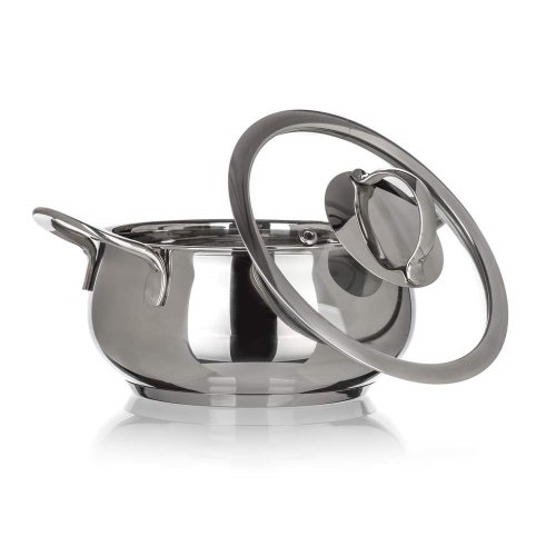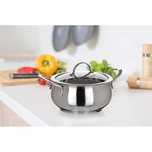 Nerezový kastrol PICCOLO Belly, se skleněnou poklicí, lze používat na všechny typy varných desek včetně indukce.