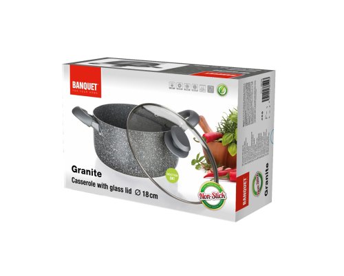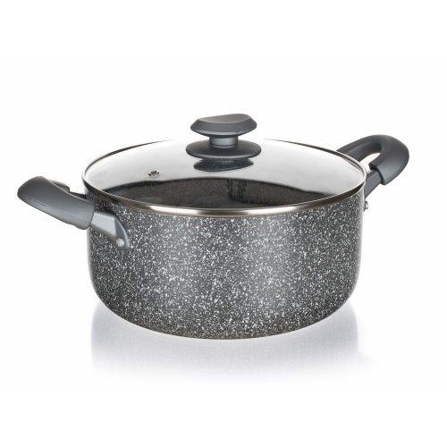 Hrnec 18 x 8,5 cm, nepřilnavý povrch, GRANITE, se skl. poklicí.