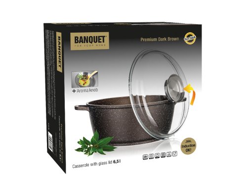 Hliníkový litý hrnec se skleněnou termo poklicí a aroma knobem PREMIUM DARK BROWN, s nepřilnavým povrchem. Nepřilnavý povrch je velmi tvrdý a odolný proti poškrábání. Hrnec je odolný proti nárazu a deformaci tvaru.