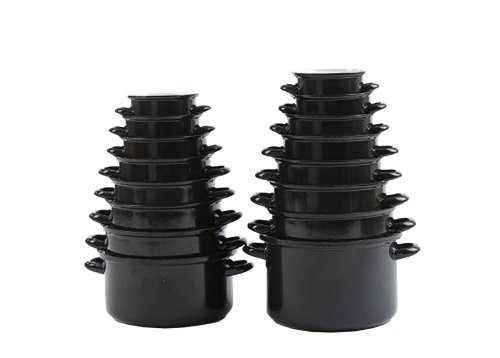 objem: 2,1 l průměr: 16 cm výška: 11 cm síla plechu: 1-1,2 mm vnitřní barva: bílý granit vnější barva: černá s bílou pihou