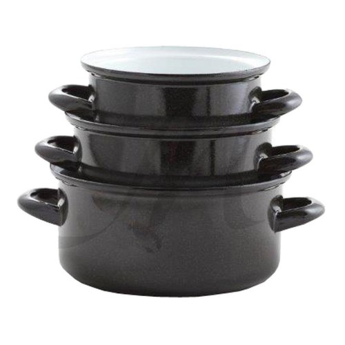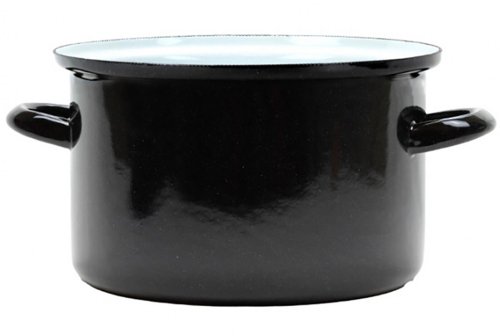 objem: 10 l průměr: 28 cm výška: 19,5 cm síla plechu: 1-1,2 mm vnitřní barva: bílý granit vnější barva: černá s bílou pihou