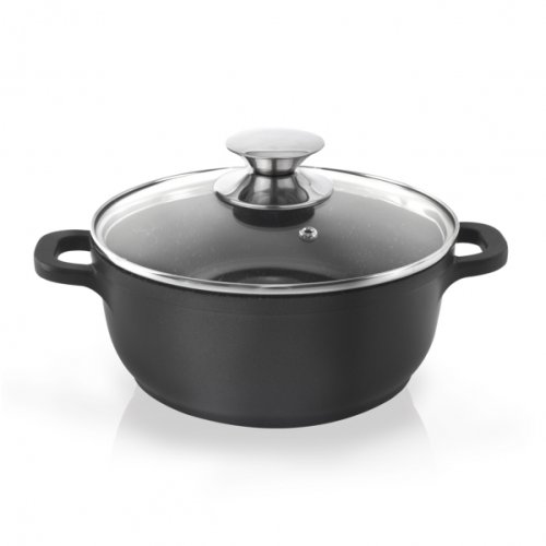 Masivní hrnec s poklicí s velmi kvalitním nepřilnavým povrchem PFLUON GRANIT. Můžete v něm vařit, smažit, dusit, opékat a zapékat s minimální potřebou tuku. Připravovaný pokrm se nepřipéká. Poklice s otvorem pro únik přebytečné páry. Vhodný na všechny typy spotřebičů včetně indukce a trouby. Materiál hliník s vynikajícím nepřilnavým povrchem PFLUON GRANIT a s profilovaným dnem, sklo, nerez. Objem 2.3 litru, průměr 20 cm, výška 8.5/14 cm. Doporučujeme použití kuchyňské chňapky. U plynových sporáků volte správnou velikost plamene, u elektrických, sklokeramických a indukčních vařičů je nutné zvolit odpovídající velikost ploténky. Připravovaný pokrm lze na sporáku připravit a pak jej vložit do trouby. Připravené jídlo můžete pohodlně skladovat v hrncích také v chladničce. Při použití v troubě poklice max. do 200 °C. Lze mýt v myčce na nádobí. EAN 8592381143107