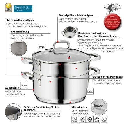Hrnce jsou nezbytnou součástí domácnosti. Vybavte si i tu vaši krásným a praktickým hrncem od ověřeného výrobce KELA. Jeho nerezová barva je univerzální a bude se hodit do každé kuchyně. Hrnec má oproti kastrolu širší dno a kratší stěny, což vám umožní rychlejší vaření a lepší distribuci tepla. Hrnec je vyroben z prvotřídních materiálů, které zaručí, že jídlo bude vždy dokonale uvařené a bude vynikat svou chutí.