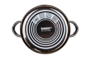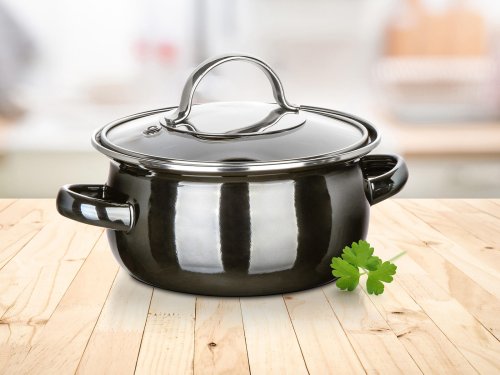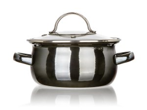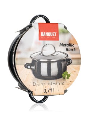Smaltovaný hrnec METALLIC Black se skleněnou poklicí. Hrnec lze používat na všechny typy varných desek včetně indukce.