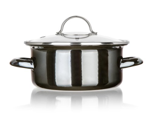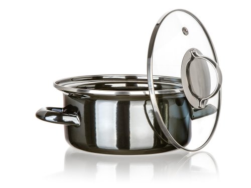 Smaltovaný hrnec METALLIC Black se skleněnou poklicí. Hrnec lze používat na všechny typy varných desek včetně indukce.