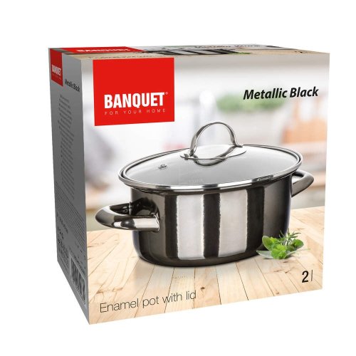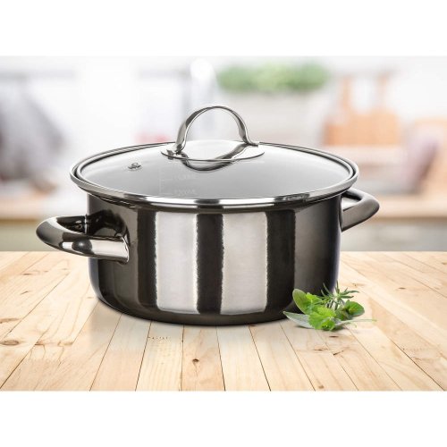 Smaltovaný hrnec se skleněnou poklicí. Průměr 20 cm, výška (bez poklice) 9 cm, síla stěny 0.8 mm. Hrnec lze používat na všechny typy varných desek včetně indukce. Hrnec není vhodný do myčky nádobí, trouby a mikrovlnky. EAN 8591022609880