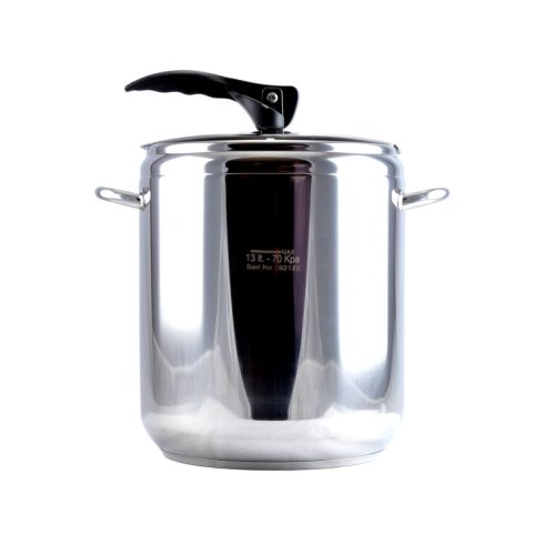 Nerezový tlakový hrnec 9 litrů s pákovým uzávěrem. Průměr 20.5 cm a výška 32 cm. Silné sendvičové dno. Víko obsahuje dva ventily, hlavní pracovní ventil a pomocný / bezpečnostní ventil. Tlakový hrnec je určen pro rychlou přípravu pokrmů a lze jej používat na všechny typy varných desek vč.indukce. Hrnec je vhodný do myčky nádobí a na indukční desky. EAN 8697004822077