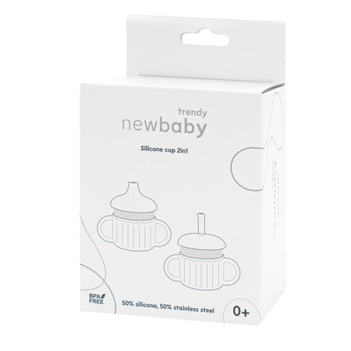 "Silikonový hrneček 2 v 1 značky New Baby, který spojuje moderní design s funkčností, ideální pro děti již od prvních dnů života (0+). Vlastnosti produktu: Prémiový materiál: Hrneček je vyroben z 50 % z měkkého silikonu a z 50 % z nerezové oceli, což zajišťuje trvanlivost a bezpečné používání. Multifunkčnost: Vyměnitelný náustek – možnost použití se slámkou nebo s pítkem podle potřeb dítěte. Objem 220 ml: Perfektní na první nápoje vašeho miminka. Ergonomická držadla: Speciálně navržená držadla u