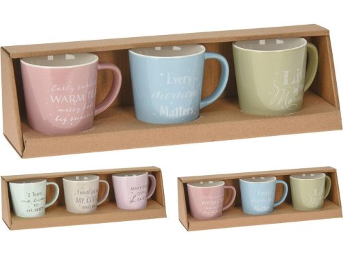 objem: 180 ml materiál: porcelán mix barev: patelové barvy s potiskem balení: 3 ks - polootevřený box