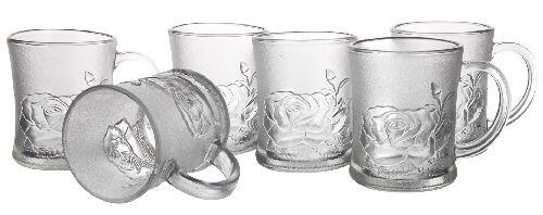 Sada ROSALIA obsahuje 6 kusů skleněných matových hrnků o objemu 250 ml s motivem růže. Hrnky jsou vhodné pro teplé i studené nápoje.