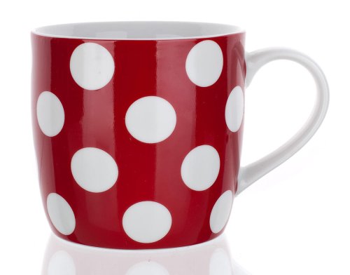 Hrnek o objemu 310 ml v červené barvě s puntíky, je vyrobený z keramiky, vhodný pro podávání studených a teplých nápojů. Hrnek lze používat do mikrovlnné trouby a mýt v myčce na nádobí.