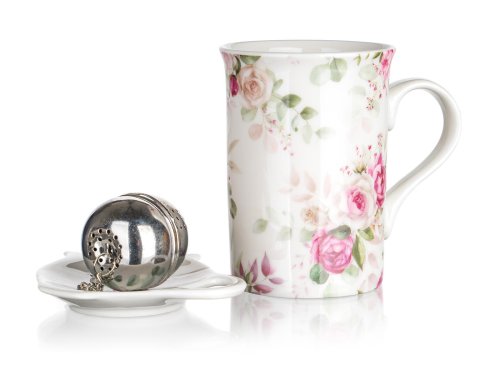 Hrnek 340 ml + tácek ROSE, keramický, sítko nerez, sada 3díl.