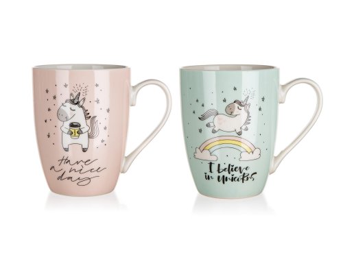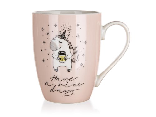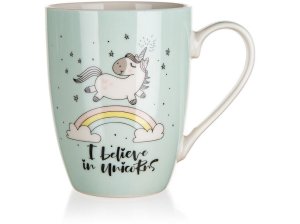Hrnek UNICORN 340 ml je vyroben z keramiky, vhodný na horké i studené nápoje. Je dodáván ve 2 designech, průměr horní 8 cm, průměr dolní 5,5 cm. Hrnek lze používat do mikrovlnné trouby a mýt v myčce na nádobí.