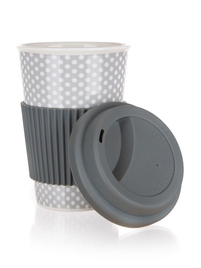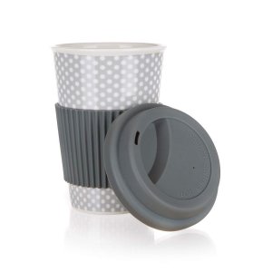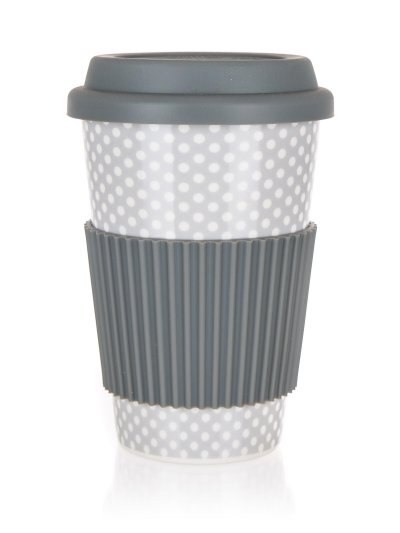 Hrnek 400 ml GO, šedý, silikonové víčko, keramický.