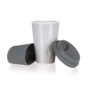 objem: 400 ml průměr: 9 cm výška: 12,5 cm materiál: keramika, silikon barva: šedá