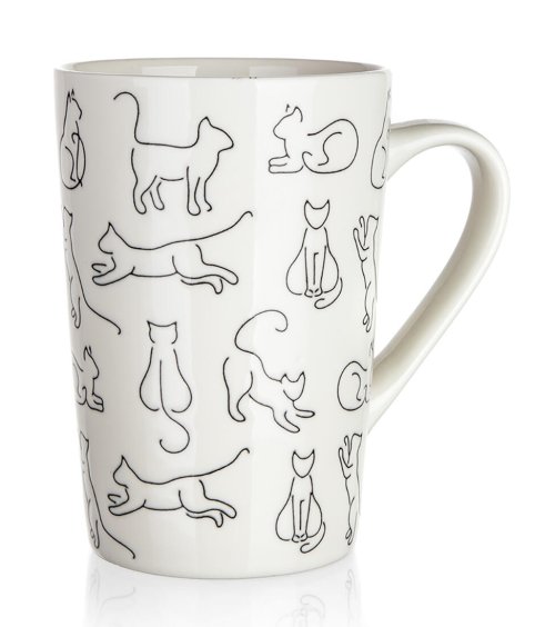 Hrnek keramický CATS o objemu 450 ml, je vhodný na horké i studené nápoje. Hrnek lze použít do mikrovlnné trouby a mýt v myčce na nádobí.