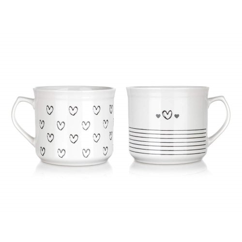 objem: 660 ml průměr: 11,2 cm výška: 10 cm materiál: keramika barva: bílá dekor: černá srdíčka