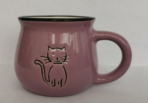 Hrnek keramický s kočkou - fialový 75 ml