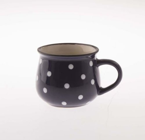 Stylový keramický hrnek s puntíky. Rozměry: 11,7 x 7 x 7,8 cm.