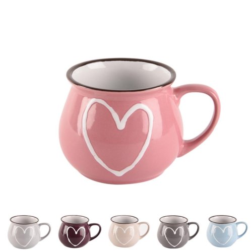 Hrnek s uchem, materiál keramika, dekor srdce. Barva dle skladové dostupnosti. Objem 0.32 litru, průměr 9 cm, výška 7.5 cm. EAN 8592381146177