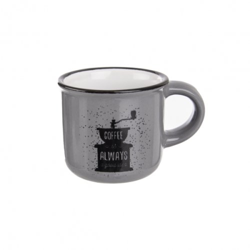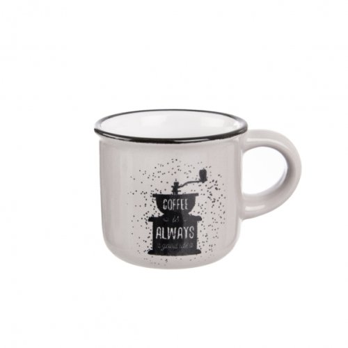 Hrnek s uchem s dekorem vhodný na malou kávu. Materiál keramika. Vhodný do myčky i MVT. Objem 0.09 litru, průměr 6 cm, výška 5.3 cm. Barva dle skladové dostupnosti. EAN 8592381165468