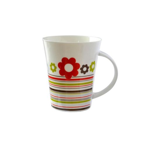 Krásný moderní hrnek o objemu 375 ml s vkusným designem květin a proužků v různém provedení. Materiál - keramika. Vhodné do myčky na nádobí. Rozměry - 9 x 11 cm.