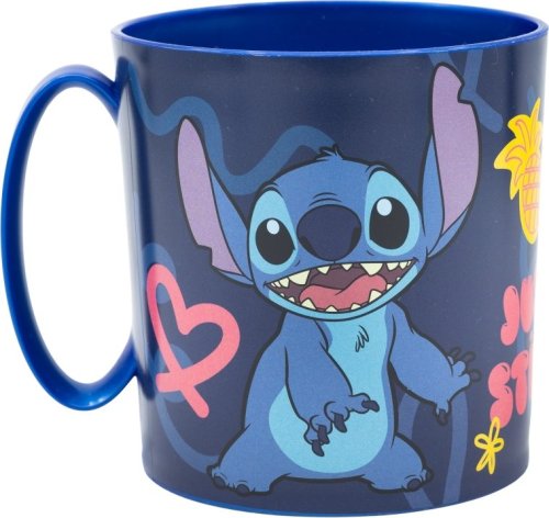 Plastový hrnek o objemu 350 ml s motivem Stitch. vhodný do mikrovlnné trouby nevhodný do myčky neobsahuje bisfenol ani ftaláty snadno se čistí