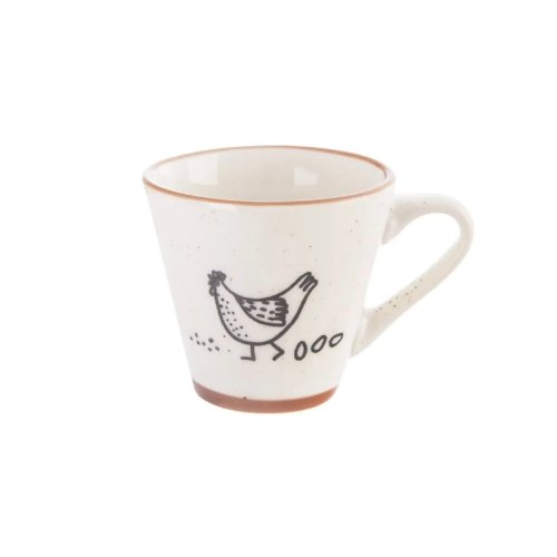 Hrnek s uchem na espresso z kolekce STATEK slepice. Materiál porcelán. Objem 70 ml, průměr 6 cm, výška 5.4 cm. Vhodný do myčky nádobí i MVT. Pro děti od 3 let. EAN 8592381207526