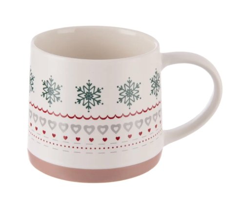 Hrnek s uchem se zimním dekorem. Materiál porcelán. Mix dekorů dle skladové dostupnosti. Objem 0.4 litru, průměr 9.5 cm a výška 8.3 cm. Vhodný do myčky i MVT. EAN 8592381226305