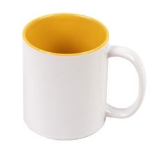 Bílý lesklý keramický hrnek Vnitřek žlutý Vnější strana je opatřena polyesterovou vrstvou Vhodný pro sublimační potisk Výška 95 mm, průměr 80 mm Objem 330 ml Ideální dárek pro nejrůznější příležitosti …