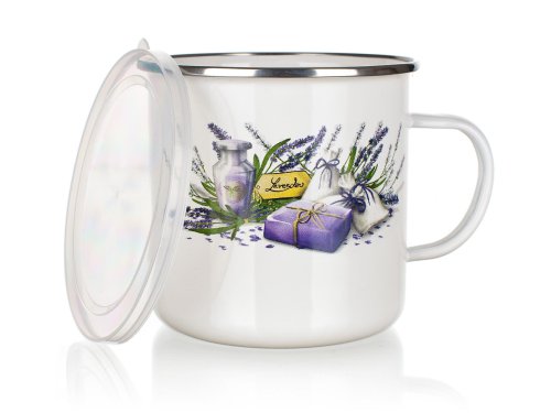 Smaltovaný hrnek LAVENDER 0,7 l s plastovým víčkem.