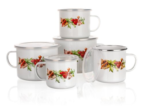 Hrnek smalt pr. 11 cm, 0,7 l, ZELENINA. průměr: 11 cm horní průměr: 10,8 cm výška: 10,3 cm objem: 0,7 l materiál: smalt tloušťka stěny: 0,35 mm barva: bílá dekor: zelenina hmotnost netto: 0,17 kg plastové …