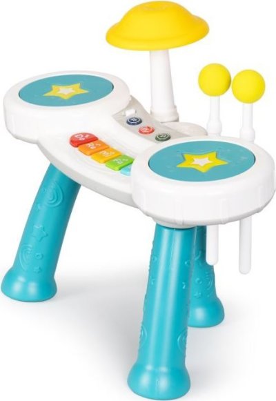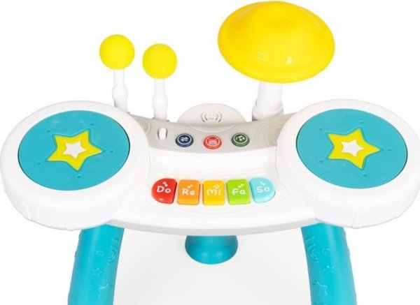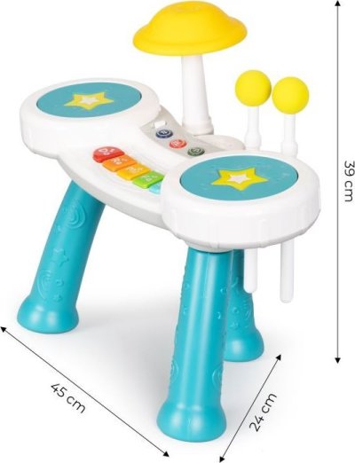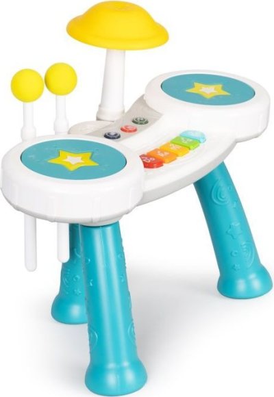 Sada obsahuje dvě paličky s měkkým zakončením. Mnoho hudebních režimů a předem nahrané melodie, které lze poslouchat ve dvou úrovních hlasitosti. Pomáhá vytvářet vztah k hudebním nástrojům a celkově k hudbě. Napomáhá rozvíjet motorické schopnosti.