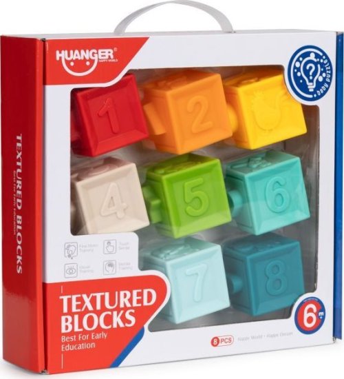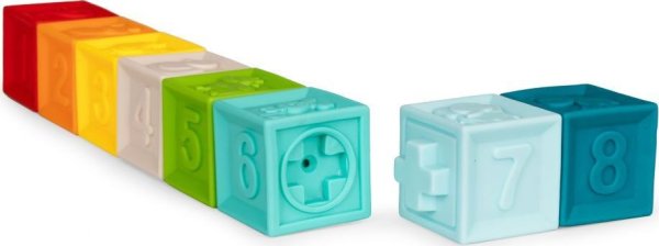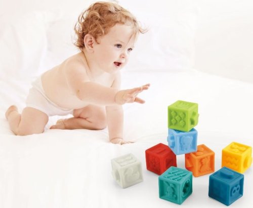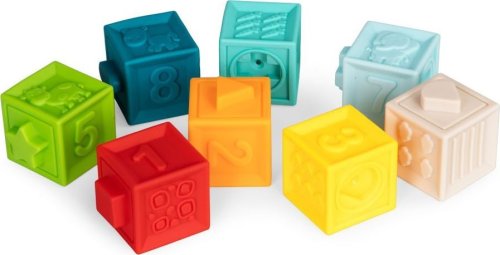 Rozvíjí motoriku a smyslové vnímání, na jednotlivých stranách je různý texturovaný povrch, tvar, zvířátko, číslo a množina odpovídající danému číslu, po zmáčknutí pískají, lze skládat na sebe vložením vystouplého tvaru do stejného otvoru kostky, vhodné pro stimulaci pohybu, rozvíjejí představivost a zručnost, první poznávání barev, obrázků a čísel.