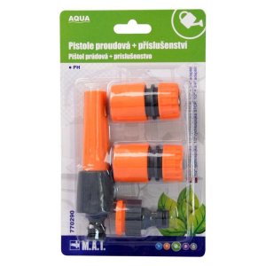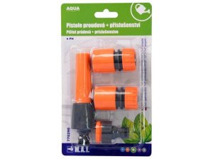 Set proudové pistole s příslušenstvím AQUA je ideálním doplňkem zahradní hadice.