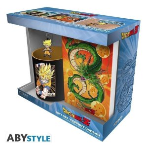 Dárková sada Dragon Ball, která obsahuje klíčenku, zápisník a hrnek.