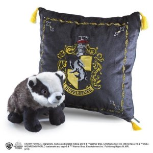 Polštář se erbem Mrzimoru a plyšový jezevec.