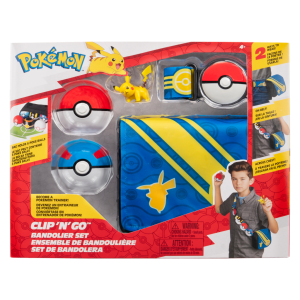 Hrací sada Pokémon z 5. série s motivem Pikachu obsahuje trenérskou výbavu: pásek, dva Pokébally, figurku Pikachu a pouzdro na Pokéball.