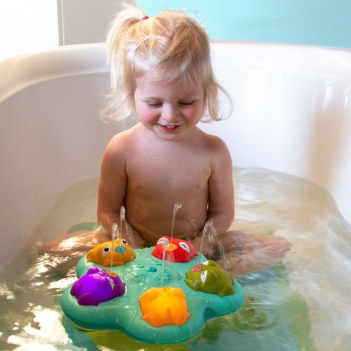 • po stisknutí žabky se spustí melodie - dítko tak může skládat vlastní melodie a sledovat, jak voda tančí v rytmu hudby