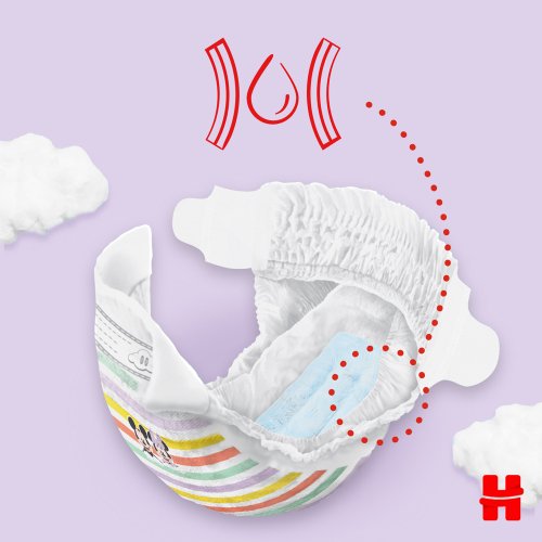 Plenky HUGGIES® Little Movers zajistí celodenní pohodlí a sucho díky super měkkým absorpčním vrstvám a kanálkům, které rovnoměrně rozvádějí vlhkost, aby se snížily objem a lépe padly. Dvojnásobná ochrana proti úniku včetně speciální zádové kapsy proti protečení poskytuje až 12 hodin ochrany ve dne nebo v noci, a to i při aktivním pohybu. Pružný pas a dvojité manžety proti protečení zajišťují lepší přilnavost a příjemnější nošení. Prodyšné materiály umožnují cirkulaci vzduchu a pomáhají tak udržet pokožku dítěte v suchu. Měkké polštářky absorbují tekutinu během několika sekund.