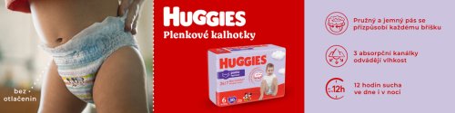 Jsou alternativou k standardním jednorázovým plenám. Dry Touch vrstva, kterou plenkové kalhotky Huggies Pants obsahují, absorbuje vlhkost během několika vteřin a udržuje pokožku v suchu po celý den a noc.