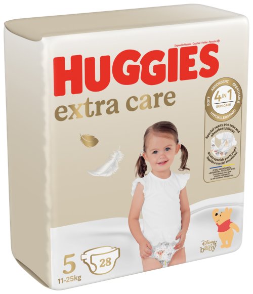 Inovované prémiové jednorázové plenky Huggies EXTRA CARE jsou nejjemnější a nejměkčí plenky pod značkou HUGGIES®. Dvě speciální absorpční zóny pro ještě lepší ochranu pokožky - měkké polštářky vpředu a kapsa pro tekutou stolici vzadu. Extra Care poskytuje péči o pokožku 4v1 - měkká, savá, prodyšná a hypoalergenní. Indikátor vlhkosti změní barvu, když je čas plenku vyměnit. Měkký elastický pas pomáhá předcházet opruzeninám na citlivé dětské pokožce. Pro novozozence vážící do 12-17 kg.
